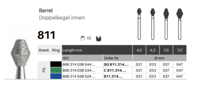 ویژگی‌های فرز دندان پزشکی الماسه 801