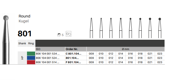 فرز الماسی 801 با کد استاندارد 801، یک ابزار توربین (FG) است که برای استفاده در هندپیس‌های پرسرعت طراحی شده. برخی از ویژگی‌های کلیدی آن عبارتند از: