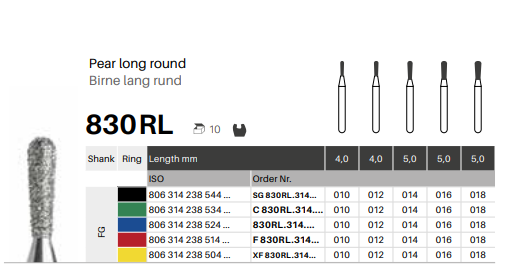• شکل سر فرز: گرد (Round)، مناسب برای ایجاد حفره‌های دقیق و برداشتن بافت‌های آسیب‌دیده.