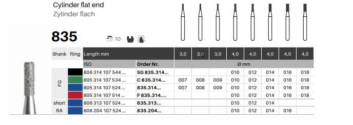 کاربردهای فرز الماسه 835 دندان‌پزشکی